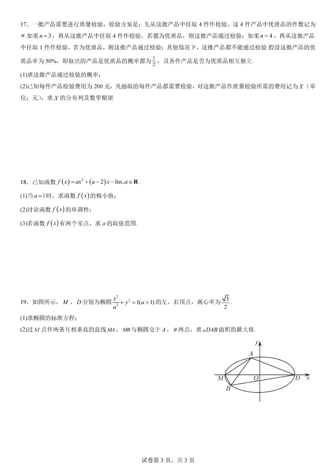 【121】湖南天壹名校联盟2026届高三3月质量检测数学试卷