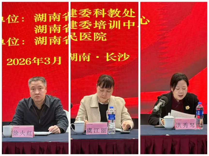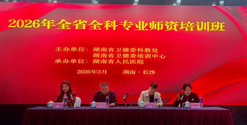 本次培训由湖南省卫健委科教处、湖南省卫健委培训中心主办,湖南省人民医院(湖南师范大学附属第一医院)承办。开幕式由湖南省全科医生培训管理办公室侯佳副主任主持。湖南省卫生健康委科教处副处长徐火红,湖南省卫健委培训中心主任、湖南省全科医生培训管理办公室主任虞江丽,湖南师范大学临床医学院院长洪秀琴,湖南省人民医院(湖南师范大学附属第一医院)教学部主任潘冰冰、全科医学科主任刘翠中出席开幕式。