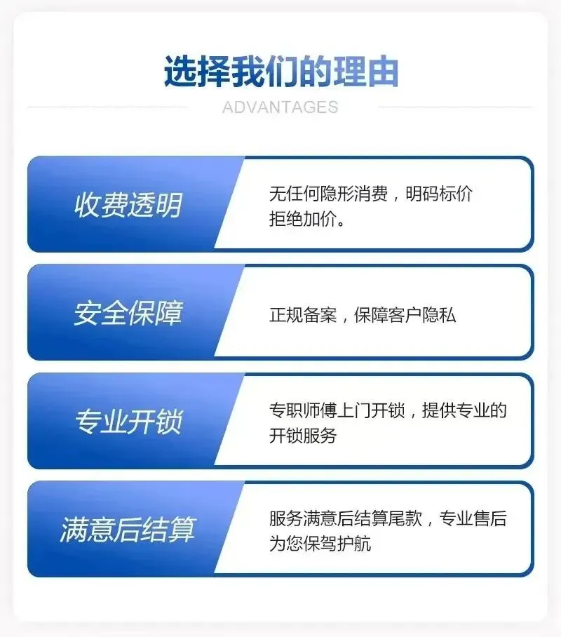 3. 无损开锁,专业技术,我们将采用专业开锁工具,纯技术开启率达99%。