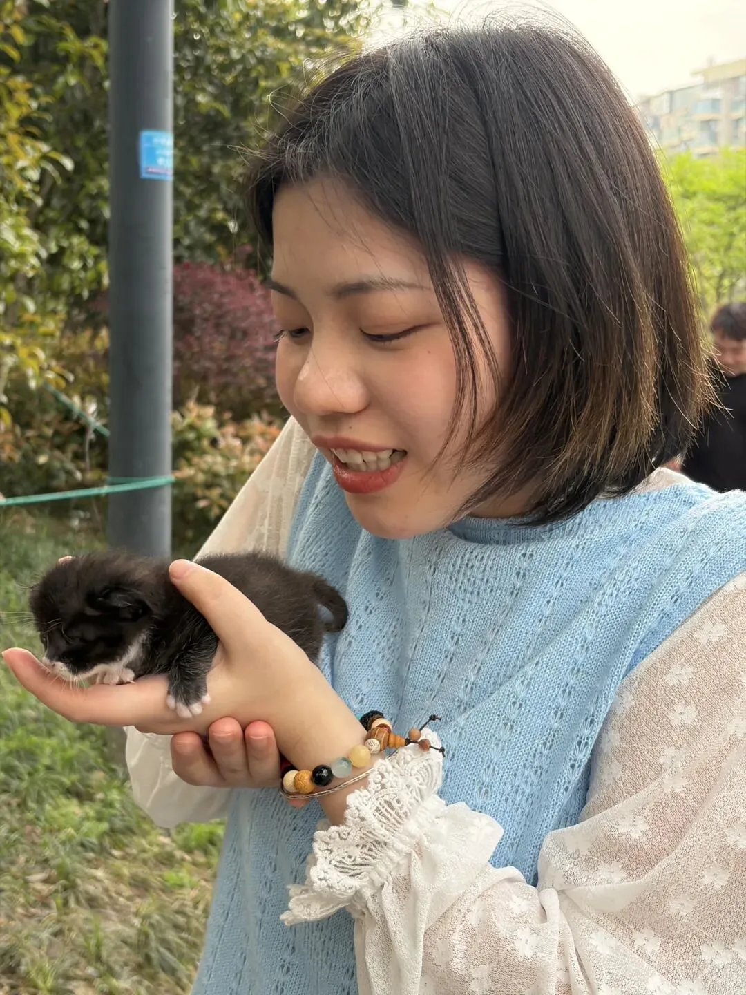 走在小河直街,看见一对年轻夫妻,正坐在椅子上,小心翼翼地给一只十多天大的流浪小猫喂奶,像对待一个婴儿。姐姐说,小猫太小了,隔几小时要喂一次,只能带出来。姐姐的儿子很骄傲地说:“我捡的。”