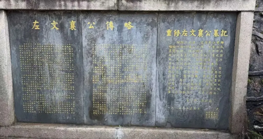 台阶的左手边下面有1985年重修左文襄公墓记和左文襄公传略。