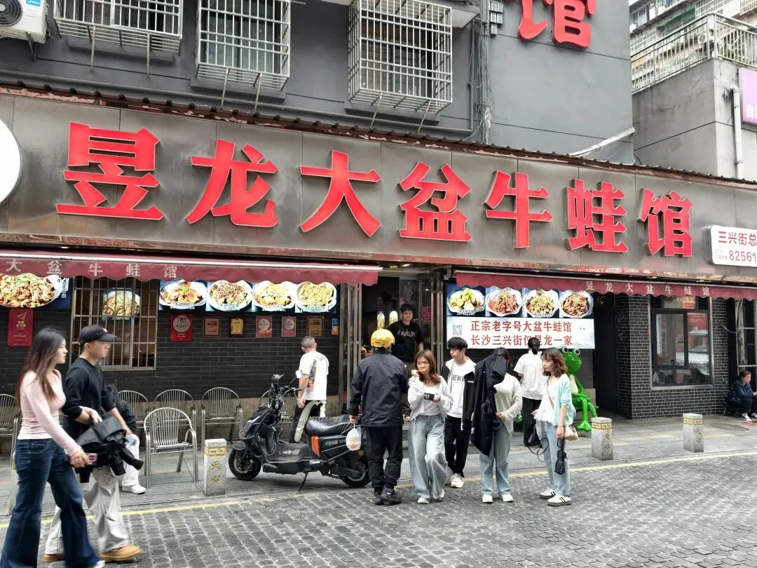 当下比较有名的是这家昱龙大盆牛蛙店,长沙牛蛙前三甲,生意兴隆。