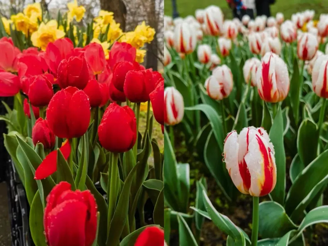 - 避坑提醒:4月初后花瓣易凋谢,别晚于3月底去;雨天后花易倒伏,尽量选晴天出行。现在去刚刚好,雨天也不妨碍,郁金香雨天拍照也很水灵喔!看这雨中花,灵不灵动!