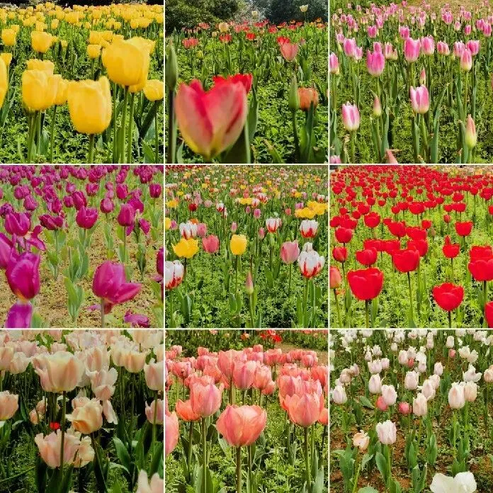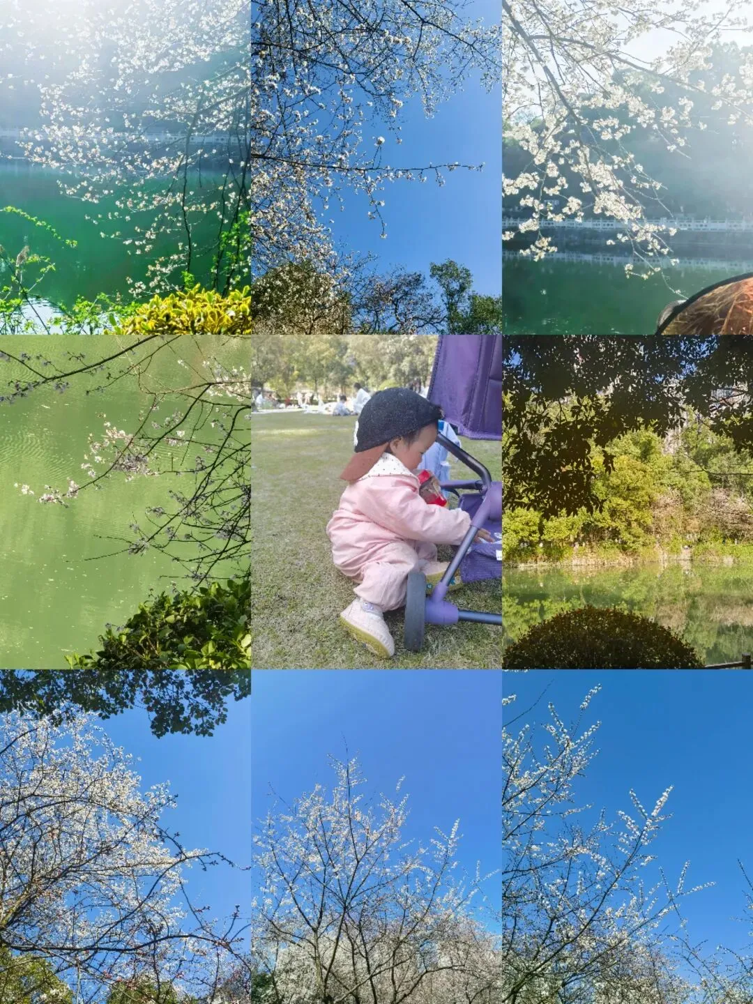 3. 花海多花种区域:郁金香+樱花+梅花同框,拼图,背景更丰富,给娃拍特写绝了