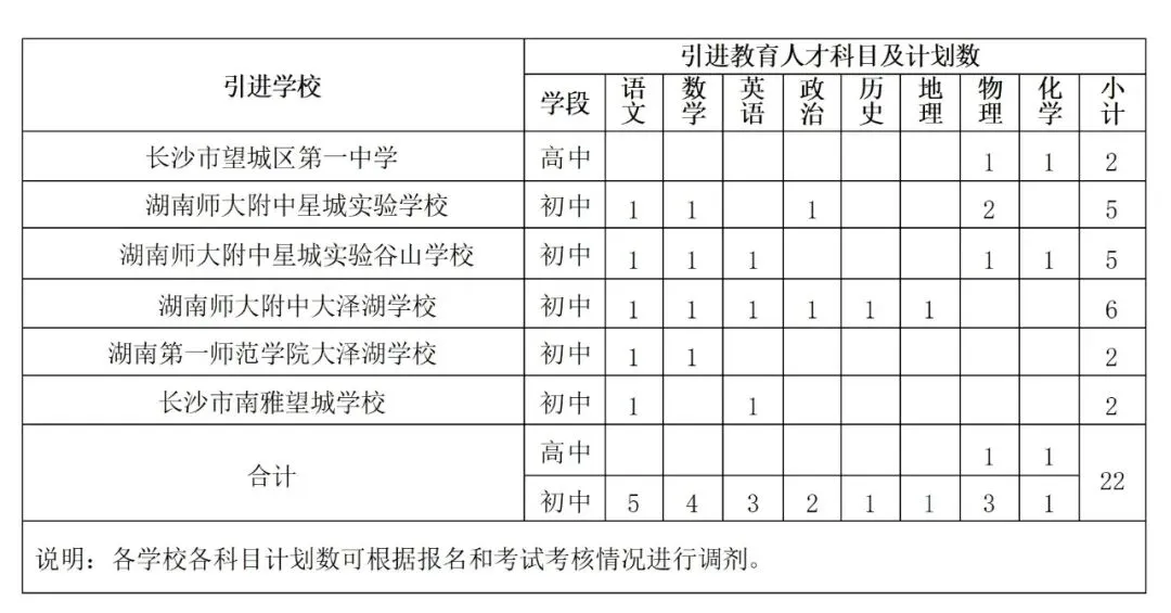 长沙市望城区为进一步优化人才结构,持续加强高素质专业化人才队伍建设,经研究决定,面向社会公开引进优秀教育人才22名,详细情况如下: