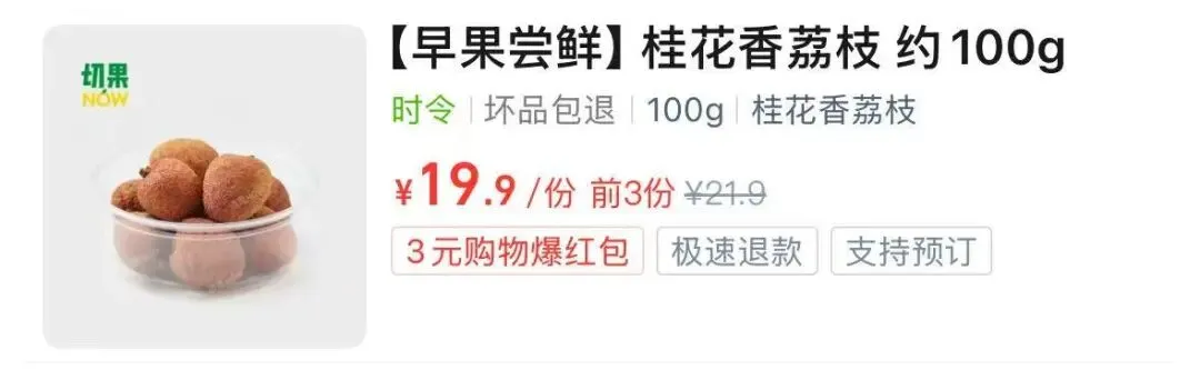 小编查了一下部分线上平台的荔枝价格,上线荔枝的商家并不多,折算下来,价格也要近80-100元/斤!
