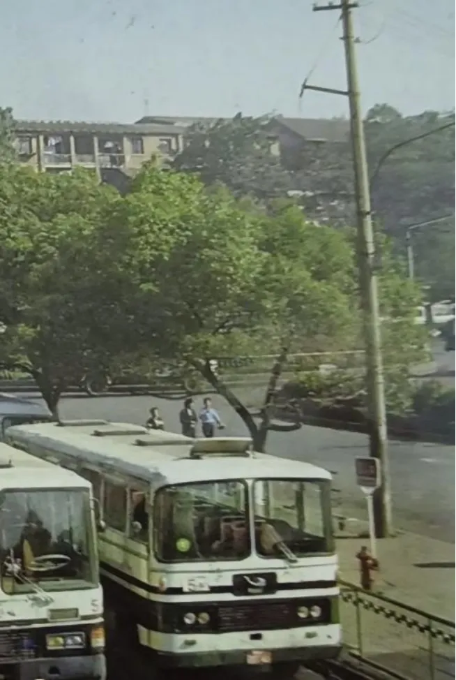 溁湾镇的公交车(远处为已经消失了的窑坡山