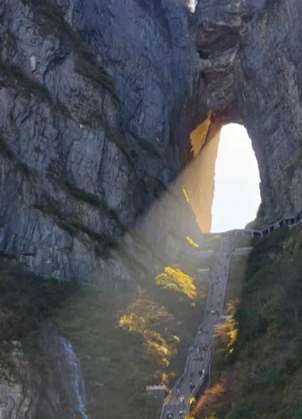 天门洞一线天开,风顺着石壁卷上来,凉得恰到好处。脚底踩着玻璃栈道,云就在脚边散开,像是有人在打翻晨雾。