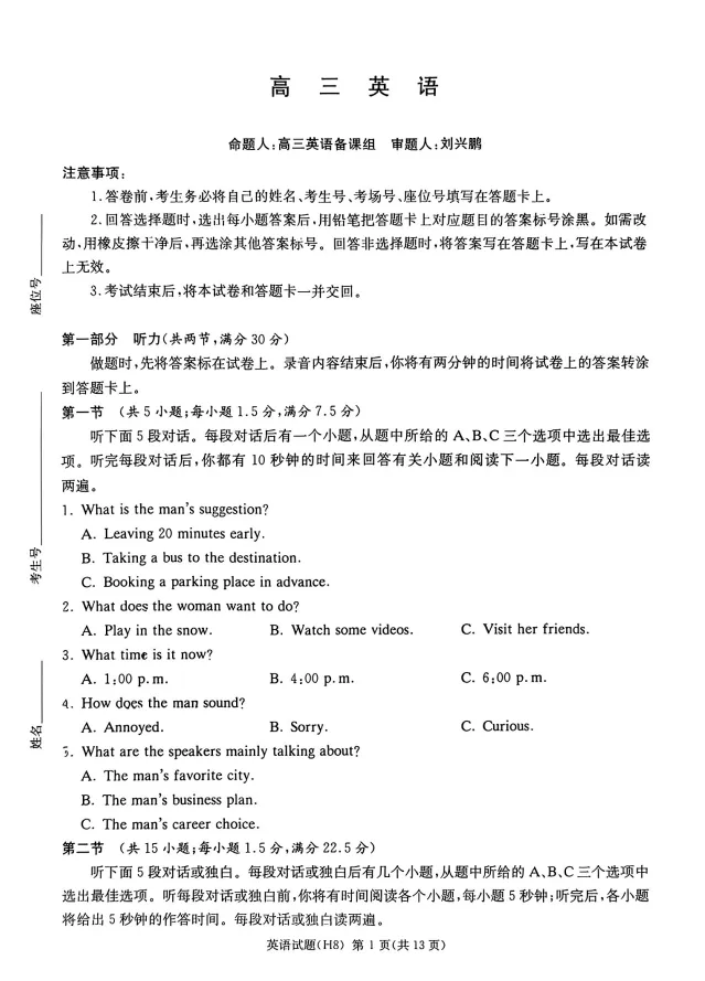 「华大新高考联盟2026届高三3月教学质量测评」