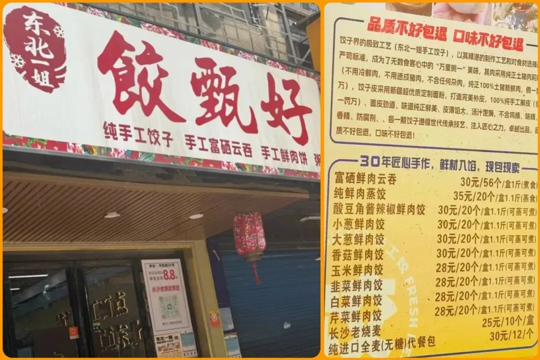 这里叫东北一姐(饺甄好),是一家做饺子、云吞和老长沙烧卖的店。一般上午九点营业到晚上七点。
