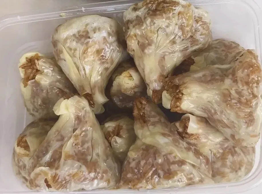 烧卖皮薄,看上去晶莹剔透的感觉,糯米颗粒分明、口感筋道、不是那种软软粘粘的,很不错。淡淡胡椒味,还有脆脆的油炸,吃一个挺满足。难怪有人排队买。
