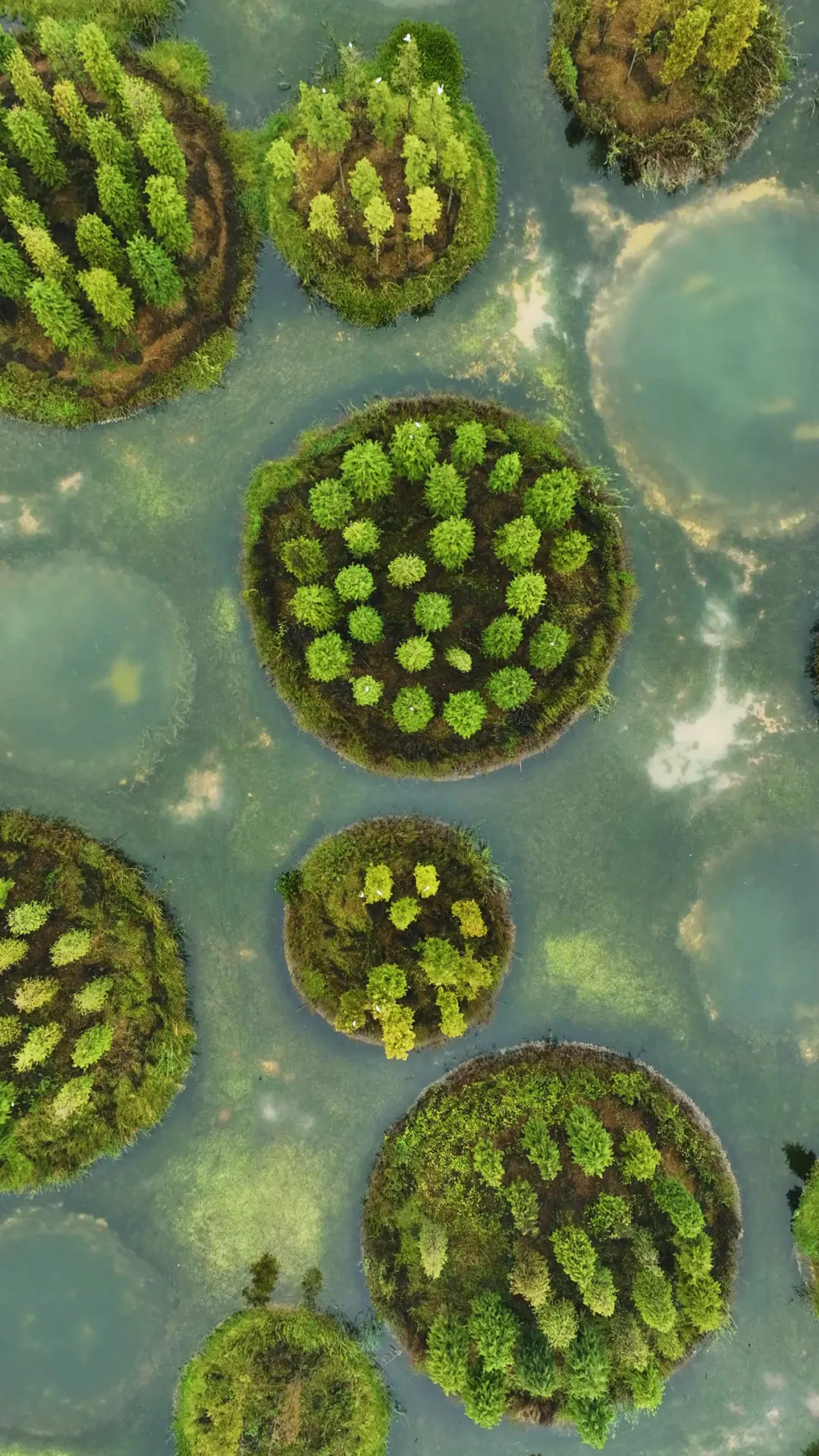 总面积2841亩的大泽湖近自然湿地公园,正奏响春天最动人的乐章。648亩核心水域泛起粼粼波光,164座大小不一的圆形树岛如同散落湖面的碧玉,水杉、池杉与芦苇交织成天然绿篱。