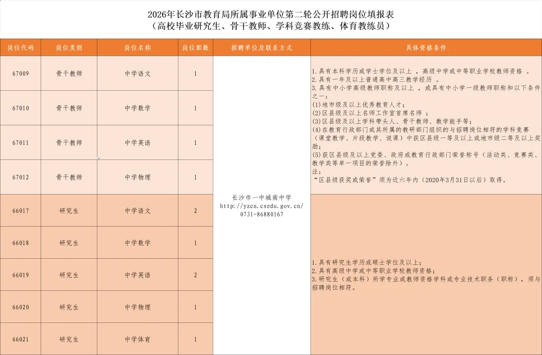 1.《2026年长沙市教育局所属事业单位第二轮公开招聘教职工公告》通过长沙市人力资源和社会保障局官网 (http://rsj.changsha.gov.cn)、长沙市教育局官网(http://jyj.changsha.gov.cn)公布。