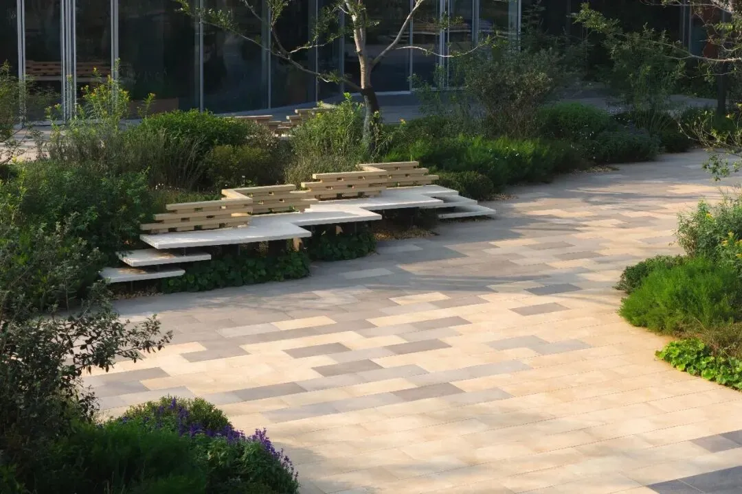 这一新开发的城市广场旨在提升城市社交互动。设计以改造城市景观为目标,通过丰富的绿植、宁静的水景和创新设计,以附近的松雅湖湿地为灵感,打造“菘菘PARK”独特的“微气候中心”,在丰富社区活动空间的同时引入丰富的植物品类,旨在为地栖昆虫、鸟类等营造适宜的生态环境,以植物多样性激活生物网络,增强生态系统的稳定性和平衡能力。漫步其间,湿地灵感的绿岛点缀其中,为对话、放松或沉思提供私密角落。铺装设计融入当地“湘绣”纺织图案,赋予文化气息,让每一步都成为对区域丰富遗产的探索。这里是社交互动、休闲放松和文化欣赏的理想场所。