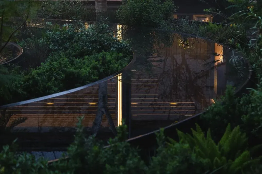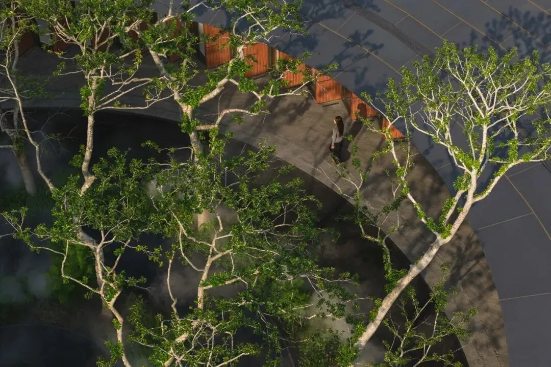 此区域被构想为住宅的核心,灵感源自长沙静谧的山峦。设计旨在通过丰富的绿植与水景相结合,营造一种宁静而充满活力的环境,森林般的框架尤为引人注目。层叠的水景元素仿佛山间瀑布,为空间增添了听觉与视觉上的宁静感。多功能草坪为社交聚会提供了灵活的空间,既促进了人际互动,又保留了宁静的休憩氛围,打造出真正的社区核心。以达到沉浸式自然疗愈的身心的度假中。我们相信,真正的放松, 是存在于不同节奏的空间转换中的。
