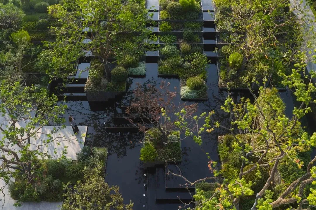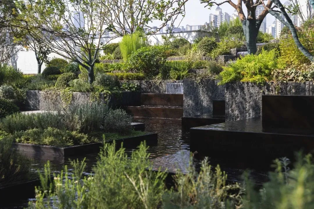 This garden is the project’s most secluded sanctuary, enclosed by black natural stone walls. Layered water features mimic mountain streams and waterfalls, evoking the feeling of a hidden village tucked into the hills. Surrounded by lush greenery, it offers a peaceful retreat away from the city’s bustle—a space that feels like stepping into a completely serene world. The area is embraced by vibrant plantings and a reflective water feature, creating an atmosphere of calm and tranquility. A multifunctional lawn accommodates both gatherings and quiet solitude, capturing the essence of a “resort” experience: relaxation within vitality. Carefully arranged vegetation weaves together calm and greenery, forming a walkable, viewable, and interactive “natural plant sanctuary,” where everyday life feels touched by leisure. Here, the landscape becomes an extension of daily living—a private backyard where true poetry exists in every ordinary step.
