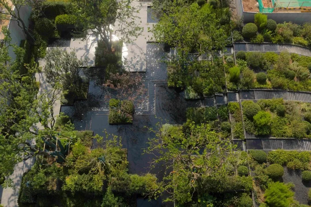 这座花园是项目中最私密的圣地,由黑色自然面石墙围合,以层叠水景模拟山涧瀑布,营造出宛如隐于山间的村落之感。四周环绕着葱郁的自然景观,为人们提供了一处远离都市喧嚣的宁静避所,踏入其中,仿佛进入了一个全新的静谧世界。空间被生机勃勃的绿意和一方静水环抱,传递出宁静安详的氛围。 多功能草坪既容纳欢聚,也保留独处的静谧, 这正是“度假”的精髓:在活力中安放松弛。 丰富的植株有序排布其间,聚合宁静与绿意的深层能量, 织就一座可游、可赏、可玩的“自然植物馆”, 让度假成为生活的常态。 我们让景观成为生活的后花园, 让真正的诗意,存在于每一个下楼的日常里。