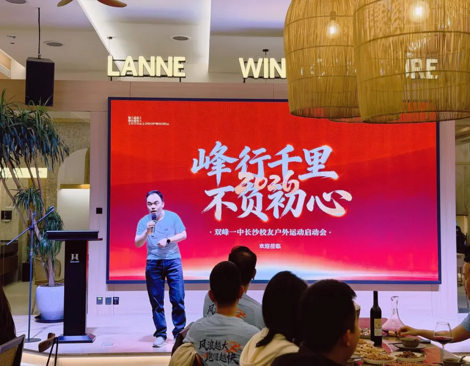 暮色四合,华灯初上。19时许,启动会暨团建晚宴在温馨热烈的氛围中正式拉开帷幕。主舞台大屏上,"峰行千里 不负初心——2026·双峰一中长沙校友户外运动启动会"的主题画面格外醒目。校友们根据预先填报的尺码领取专属团服,换上统一的"战袍",瞬间拉近了彼此的距离。