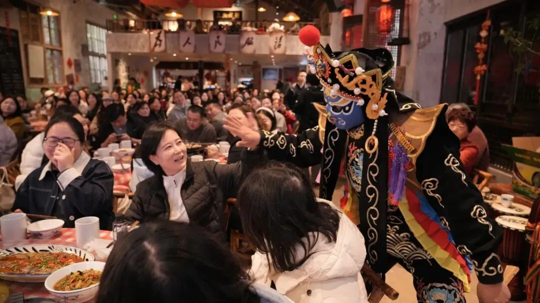 在由老供销社改造而成的小茶馆里,记者遇到了游客刘蓉一行。茶馆内茶香袅袅,刘蓉与朋友们一边品茶,一边欣赏湘绣戏服,感受非遗之美。“这个茶馆很有味道,坐在这里喝茶、感受传统技艺的精湛,看着窗外的花田,感觉时光都慢下来了。”刘蓉说。