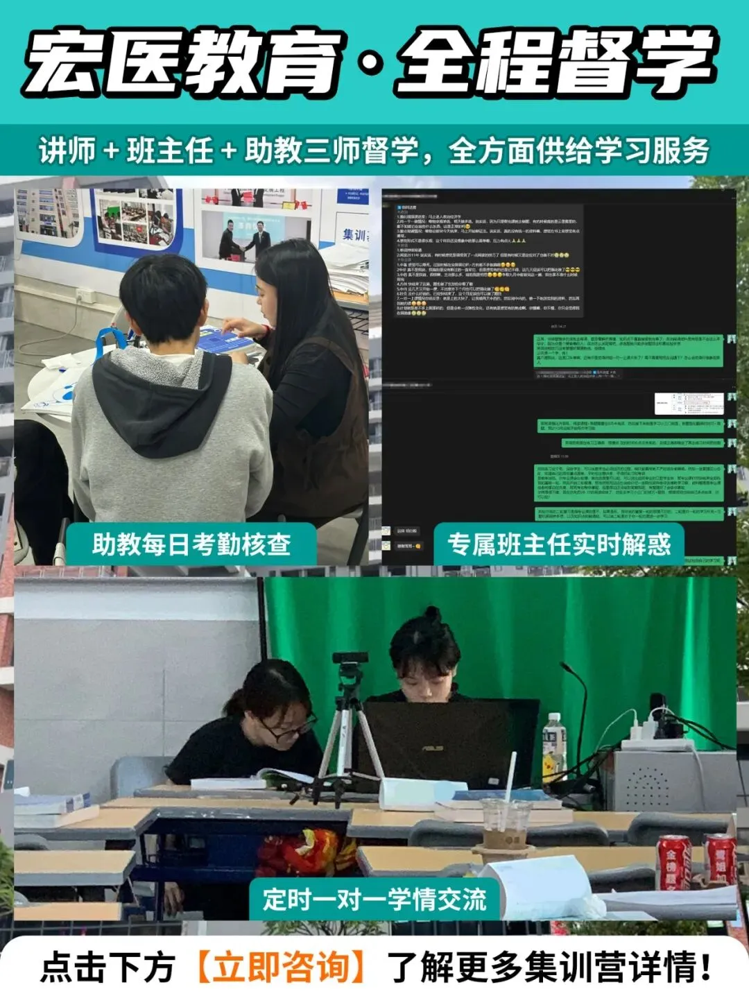 备考路上最大的敌人,从来都是自己的拖延与懈怠。宏医教育独创「讲师+班主任+助教」三师督学体系,全方位筑牢学习防线,让每一分钟备考时间都高效利用。