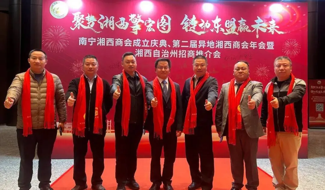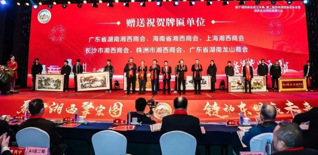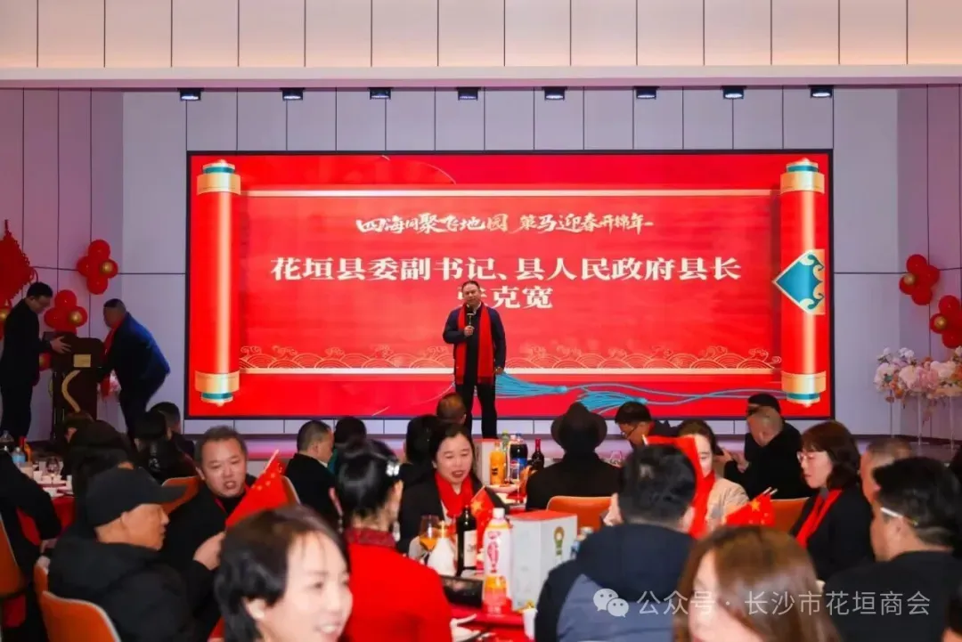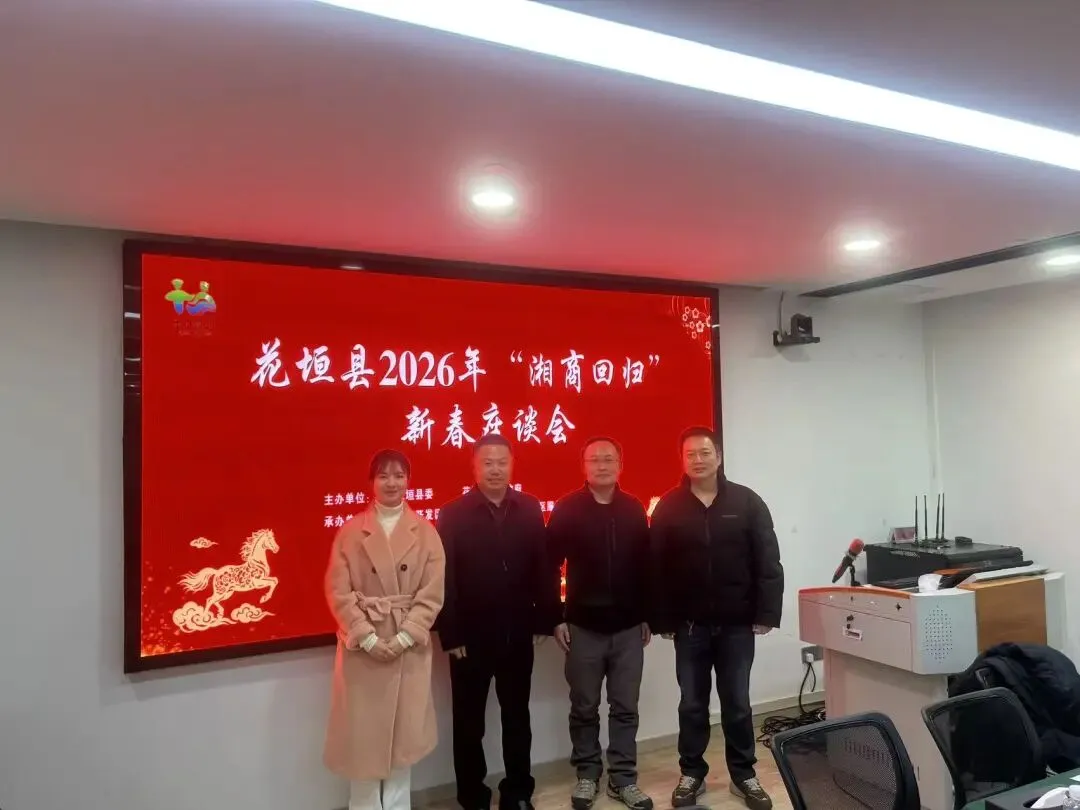 2月13日,花垣县2026年“湘商回归”新春座谈会召开,邀请花垣异地商会代表、2025年落地项目企业代表、湘商企业代表、校友会代表欢聚一堂,共叙乡情、共话发展。我商会副会长吴秋玲、向宇、向沅,秘书长李健受邀参加座谈会并发言。