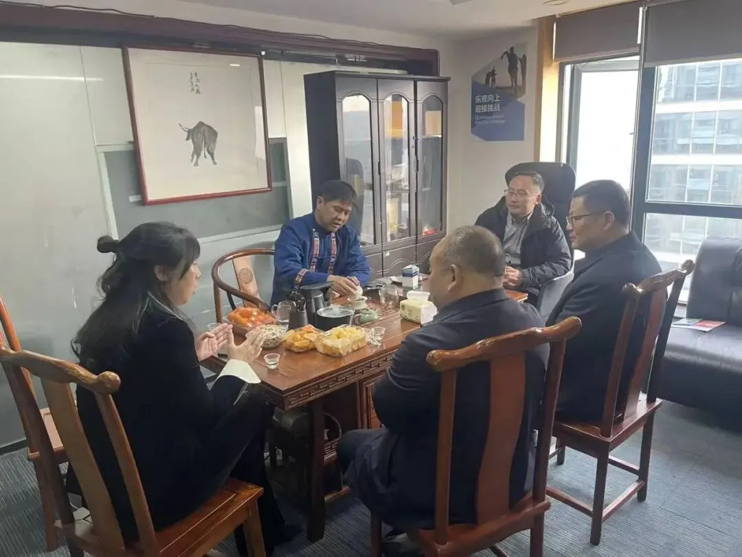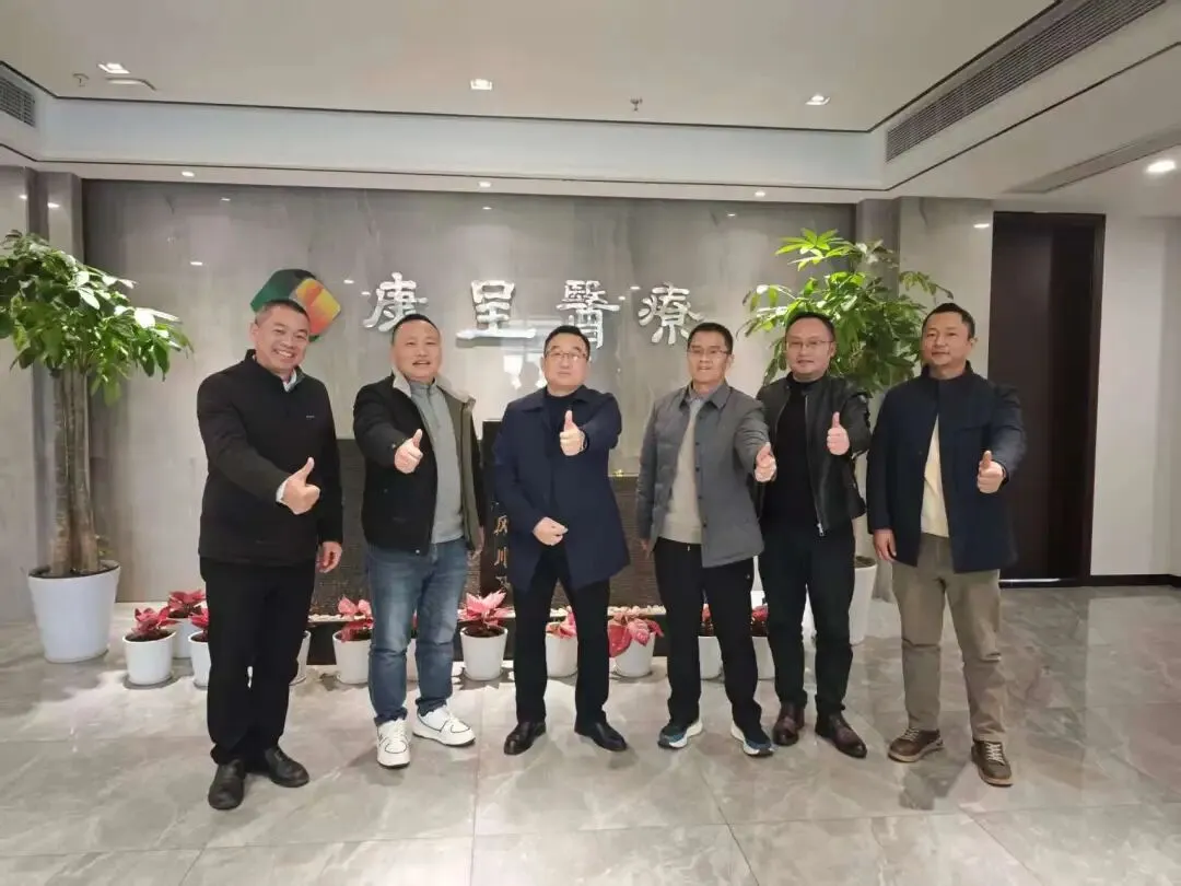 1月8日,花垣县政协副主席、工商联主席龙波年底走访我商会理事单位康呈医疗,公司法人代表龙秀松予以热情接待。我商会副会长向宇、理事吴阳海、龙再德、吴再烨陪同考察。