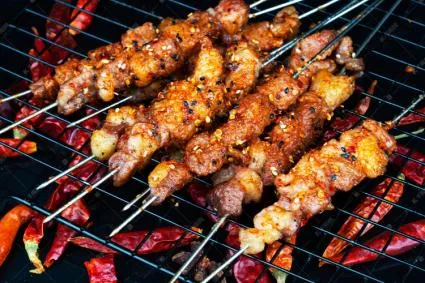鲜香的小锅米线,油滋滋的烤串