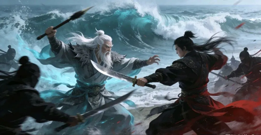 湘中叟长剑急点,逼退身前敌人,却眉头紧锁:“不行,他内力如渊,我们一靠近,反会被他笔势所困,只会给小刀子添乱!”