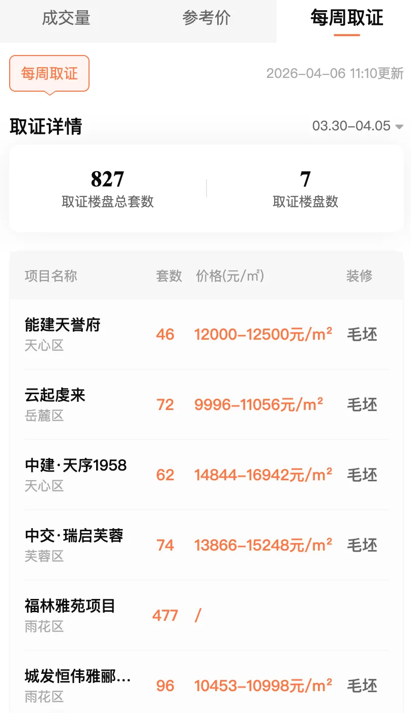 上周长沙楼市供应端较多,7盘取证,827套住宅;其中一个纯新盘-福林雅苑取证。