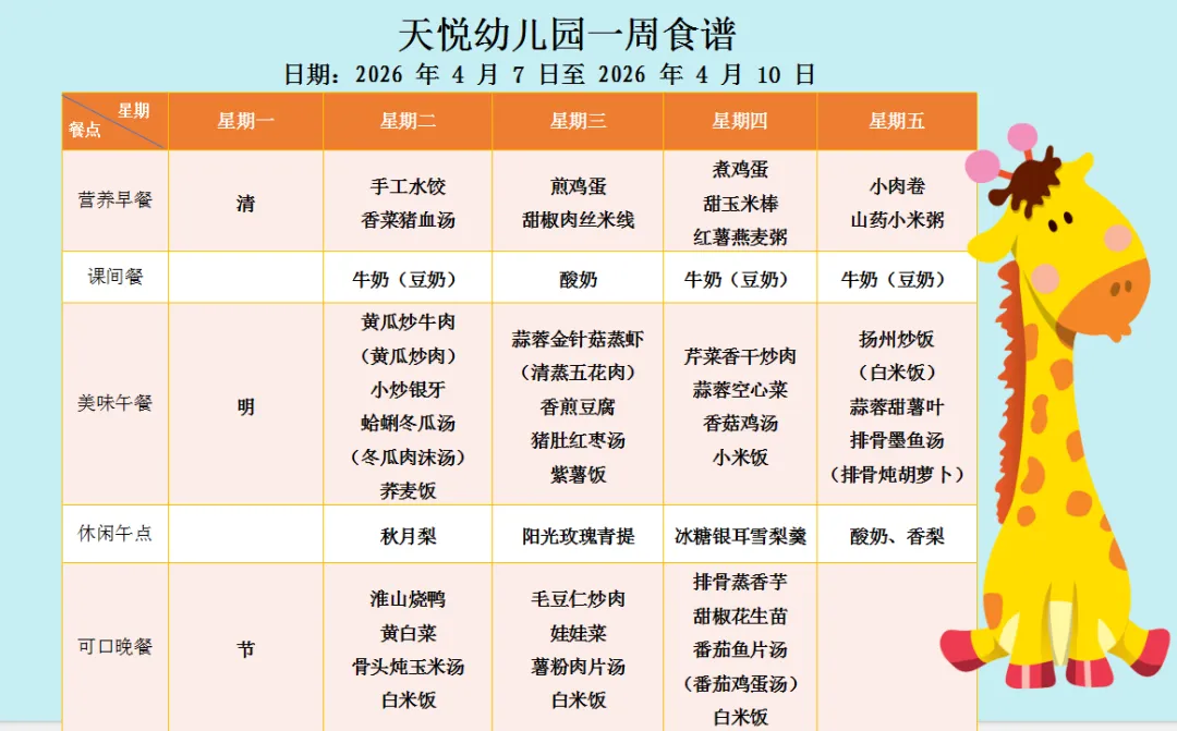 长沙市天心区教育局天悦幼儿园美味时刻(2026.4.7——4.10)