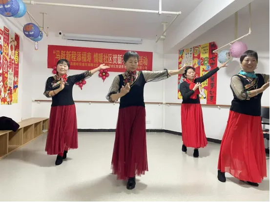 活动将红色文化与传统年俗深度融合,打造兼具教育意义与节日氛围的展演环节。党员与老人共同合唱《没有共产党就没有新中国》,社区社会组织代表编排民俗舞蹈,既通过红色节目传递爱党爱国情怀,又以传统年俗节目唤起老人的文化共鸣。同时,现场设置党建成果展示区,展出2025年社会组织养老服务纪实照片40余张,让老人直观感受到党建引领下的服务成果,进一步增强了社区归属感。