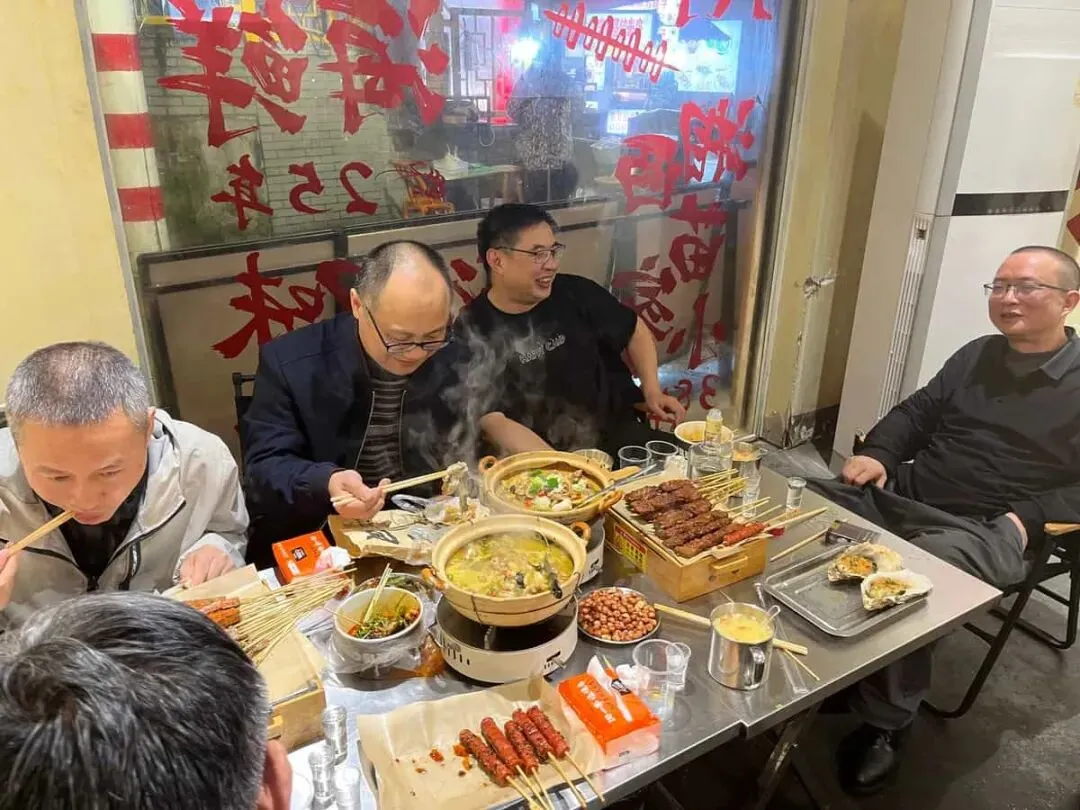 那一晚,说不完的话比桌上的菜还热闹。错过大部队晚餐的几位同学,又在东瓜山续上了一场烧烤小聚。长沙的第一夜,就这样在灯火、夜宵和互相打趣里慢慢铺开。