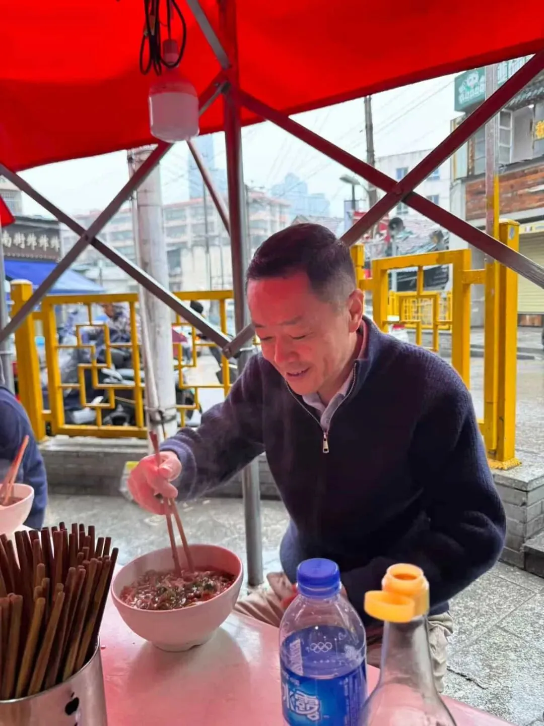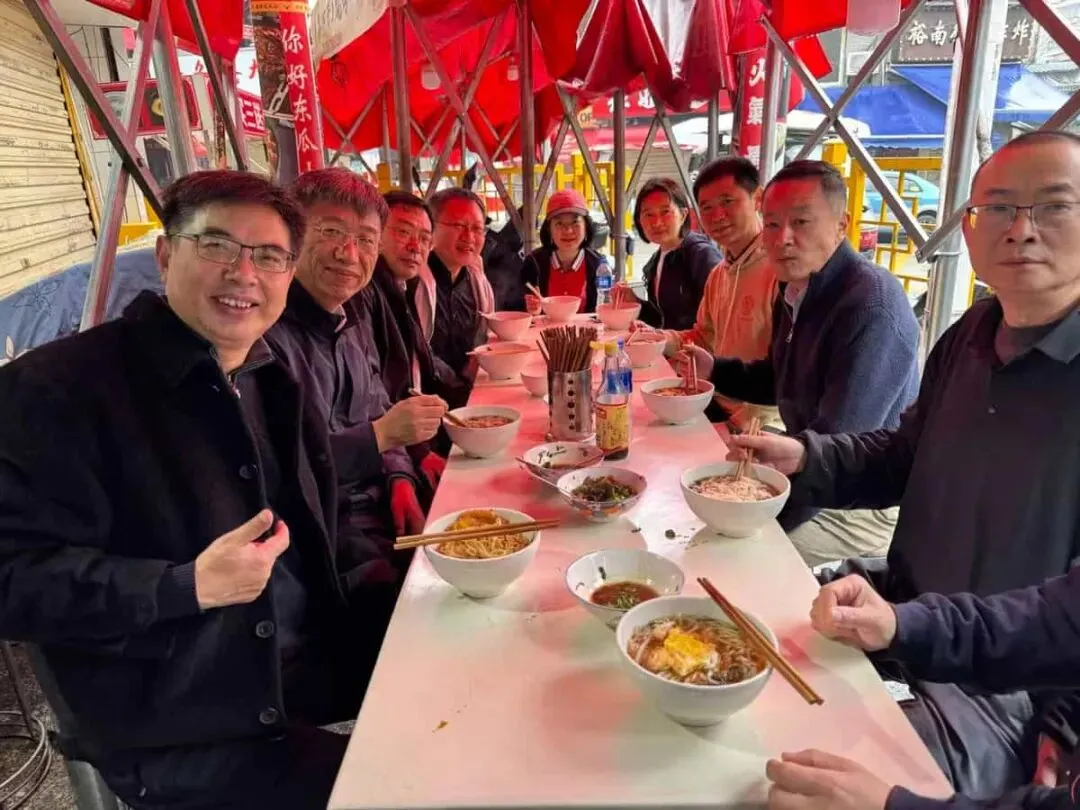 第二天一早,长沙的问候是一碗热腾腾的米粉。大家坐在街边棚下,面前是浓汤、炒码、辣香和刚起锅的烟火气,清晨还带着潮意,胃口却已经被彻底唤醒。