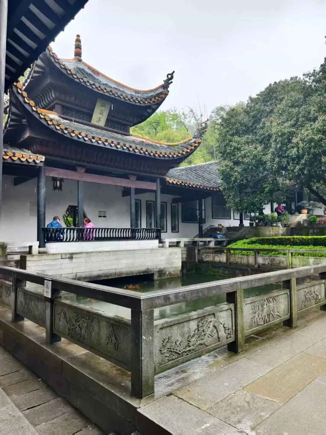 雨中的岳麓书院池景