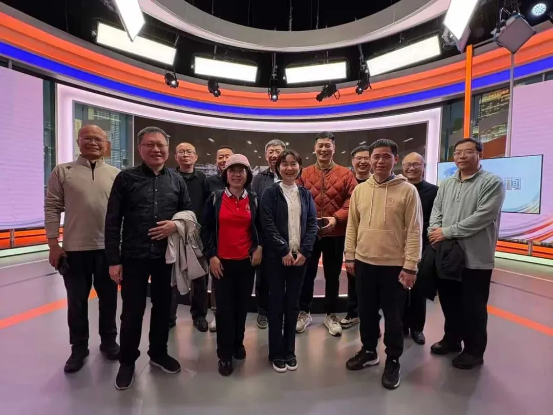 更有意思的是,大家还轮流体验了一把“上镜”。站在演播台前,灯光一亮、背景一开,每个人都像瞬间被带进了另一种身份里,既新鲜,又好玩。那一刻,谁都不太像“游客”,更像一群来串门、顺便过足镜头瘾的老同学。