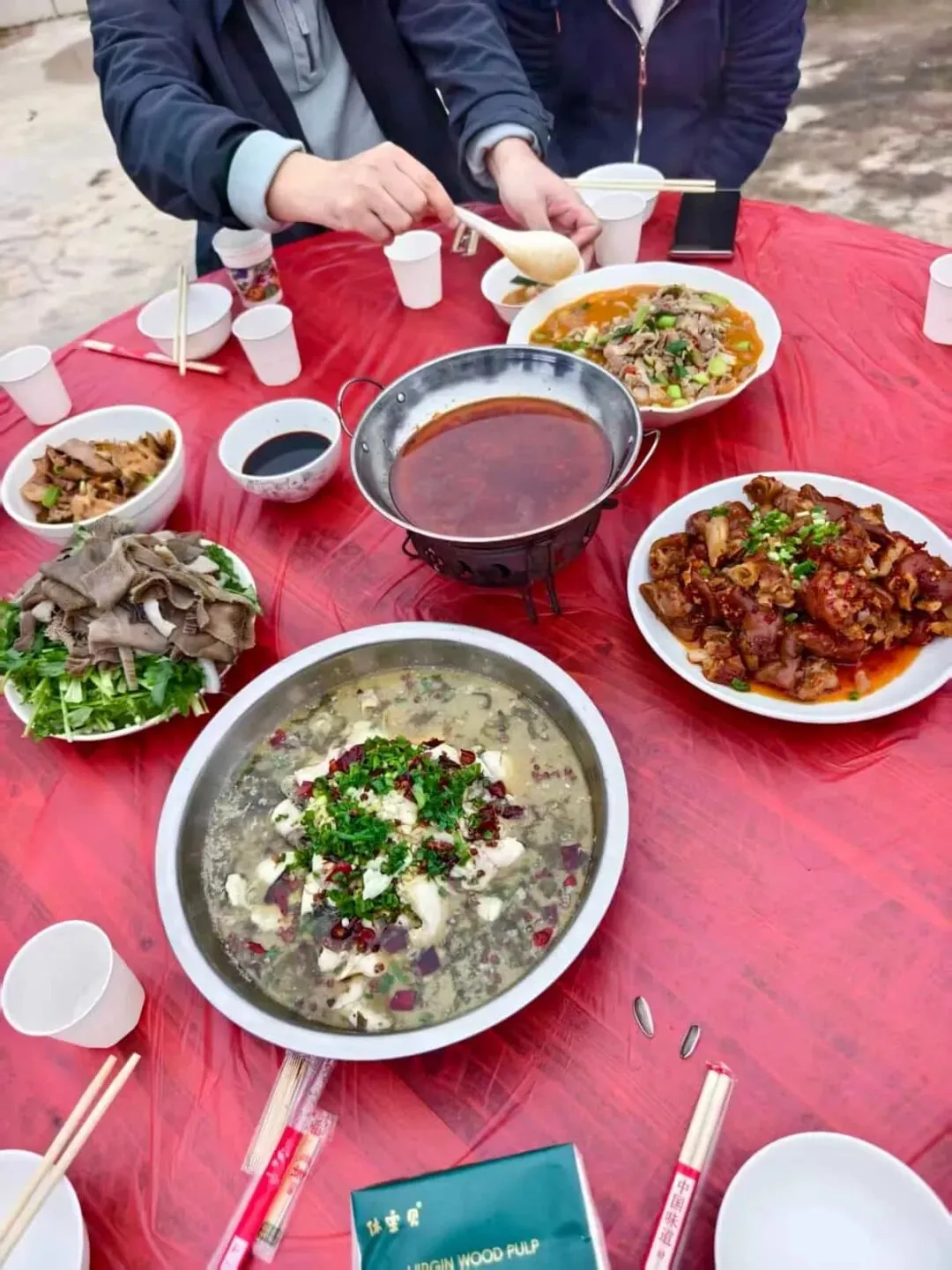 真正的“坝坝宴”就从这里开始。大锅现炒、圆桌摆开、农家菜一盘盘上桌,自家待客的真诚感,比任何精致布置都更打动人。菜是热的,话也是热的,连彼此打趣都带着一股家里人才有的熟络劲。