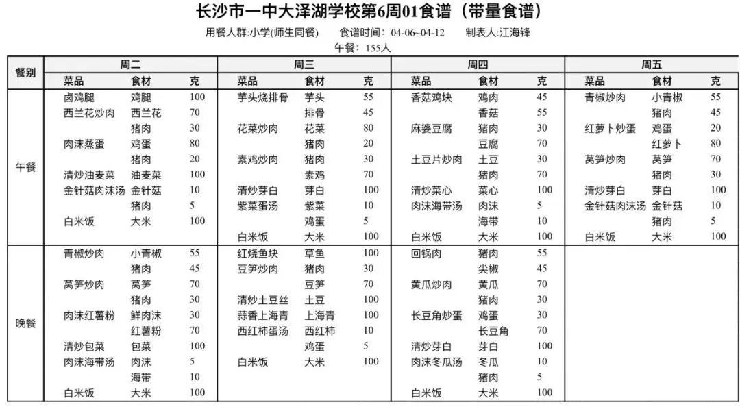 健康成长,“食”刻相伴|长沙市一中大泽湖学校第六周营养食谱