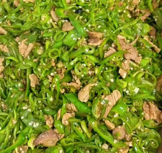 (小青椒55克、猪肉45克)