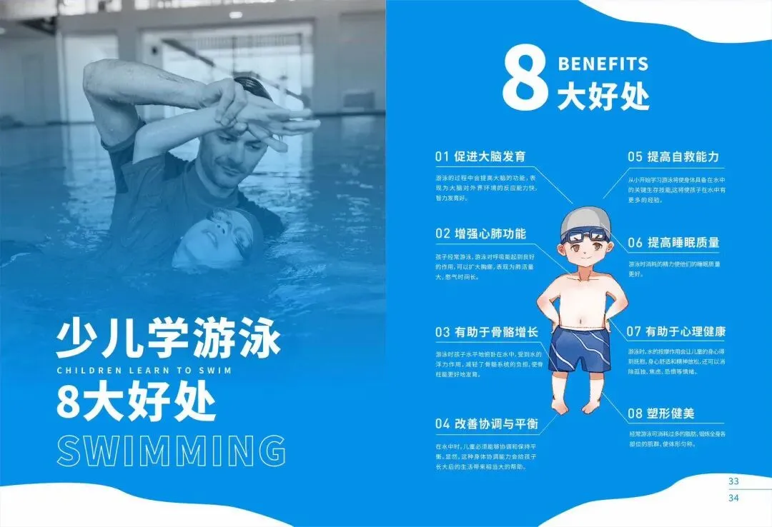 儿童学游泳可促进骨骼发育、有助于长高、提高自身的抵抗力、免疫力、调整精神状态、提高关节的运动与灵活