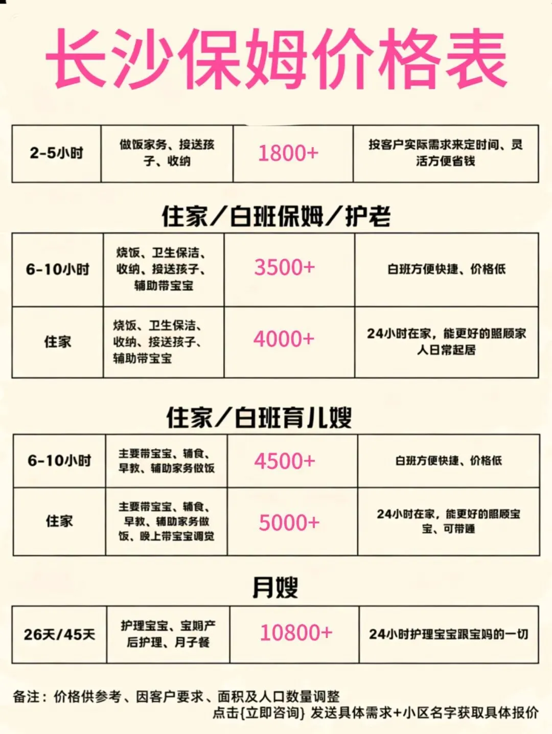 长沙的宝妈、打工人姐妹看过来!整理了超全的长沙保姆价格表,涵盖钟点工、住家保姆、育儿嫂、月嫂全品类,价格透明不踩雷,建议直接收藏🌟