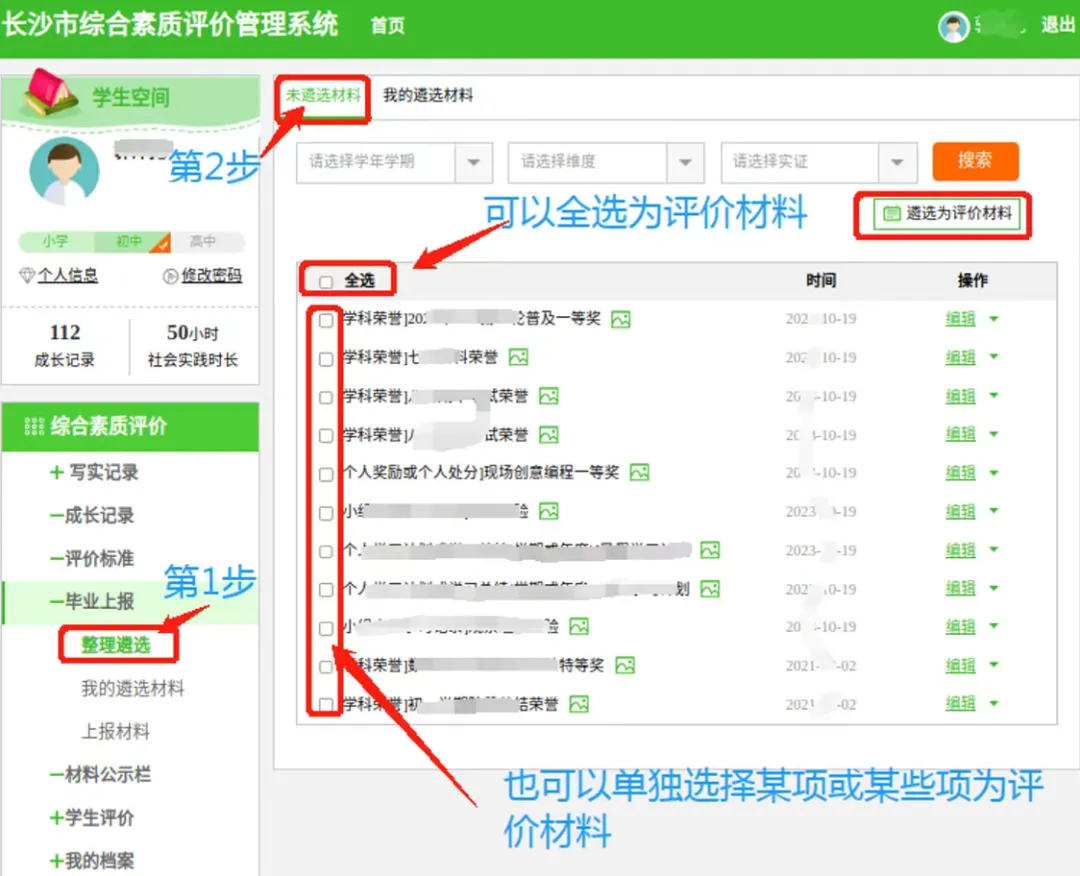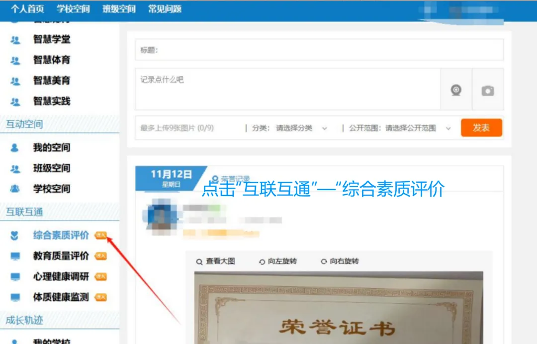 → 点击绿色【综合素质评价】整理资料