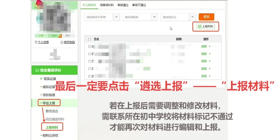 只上传资料到人人通,不点击上报到综评系统 等于白搞!