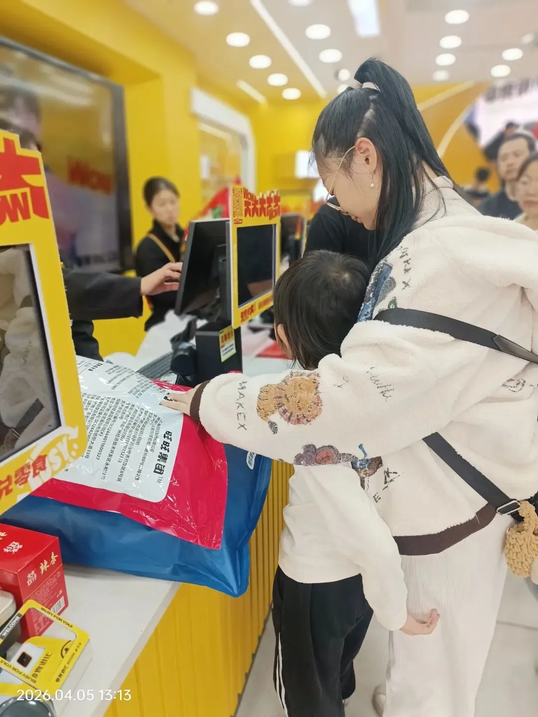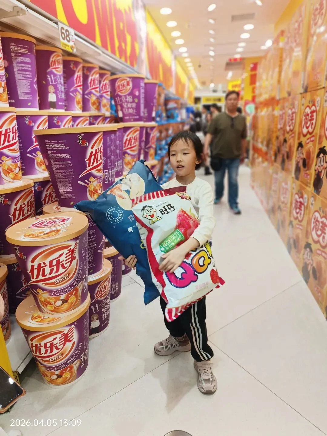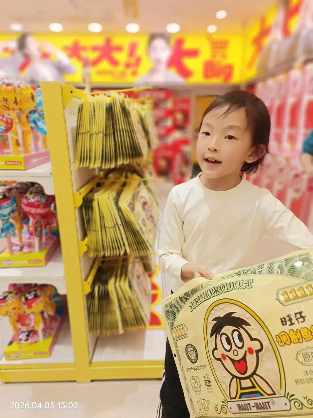 被各种五颜六色的零食包围,这个拿拿,那个看看,简直像发现了“宝藏”一样兴奋。