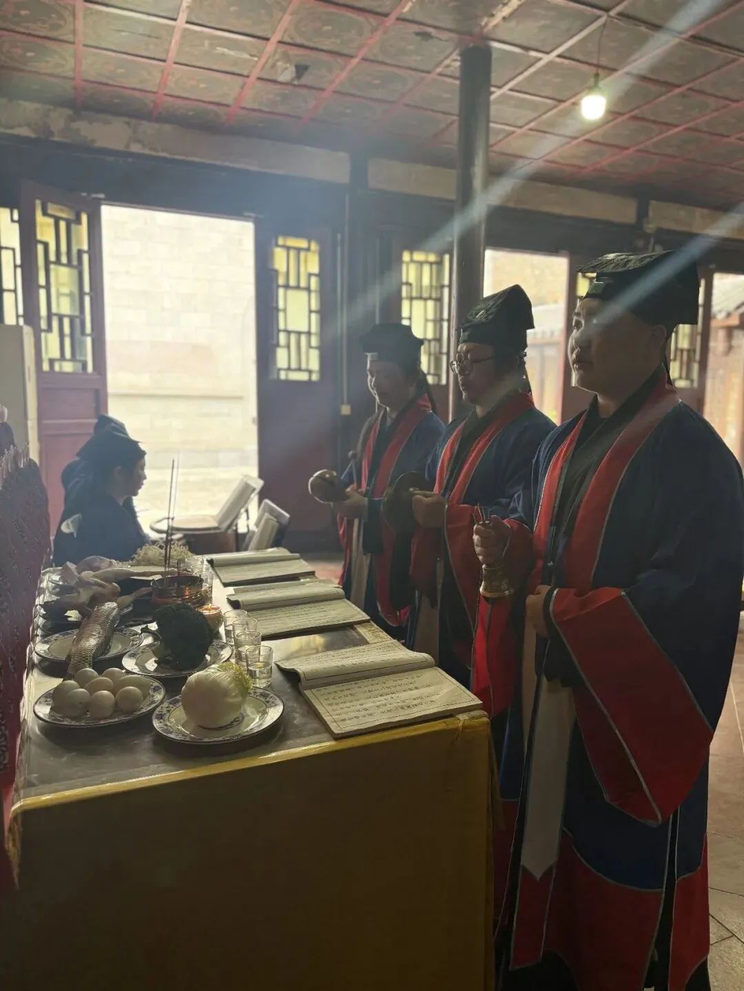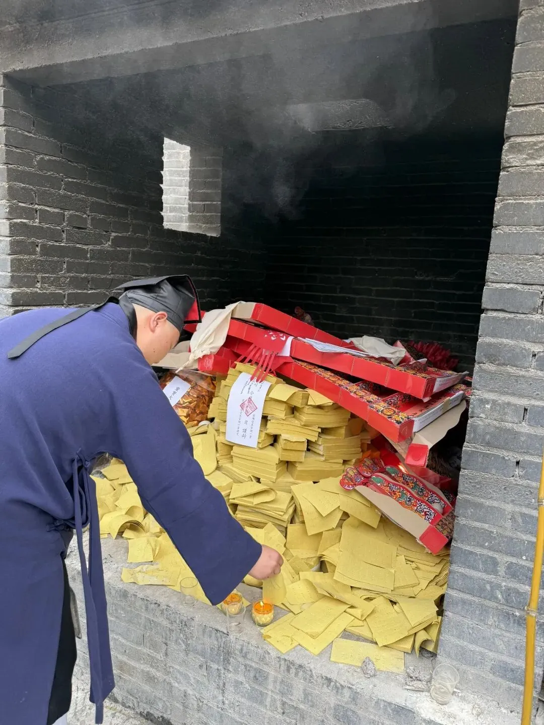 清明时节,气清景明,亦是阴阳相通、追思感怀之日。东岳宫内设坛焚香,高功法师登法座,经师团诵真经。请圣、招亡、诵经、招将、化篢——依科行法,仰仗太乙救苦天尊慈光接引,使历代宗亲、堕胎婴灵、冤亲债主等脱离苦趣,早登青华长乐之界。一纸牌位,一缕青烟,皆是生者对亡者的无尽追思。
