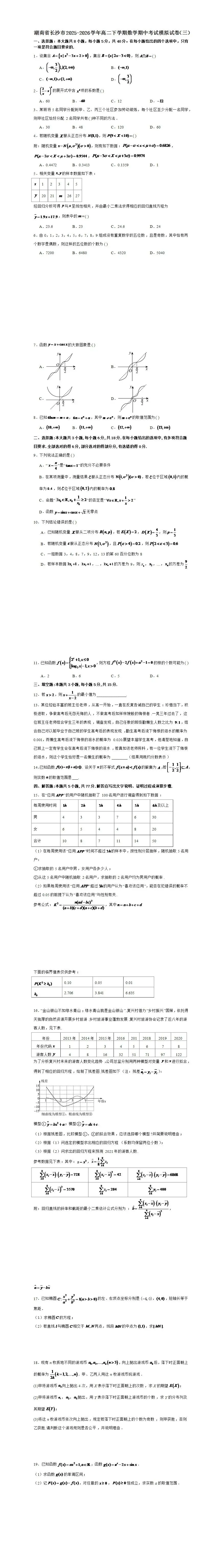>湖南长沙市2025-2026学年高二下学期数学期中考试模拟试卷解析