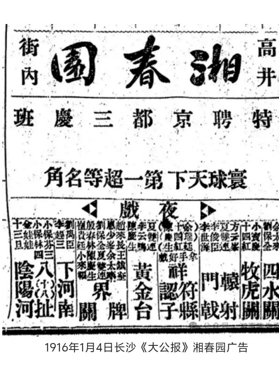 1914年,黄谷春邀湘剧名角柳介吾、张福冬等在高井街创办湘春园剧场,红火了二十余年。