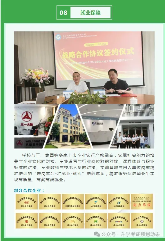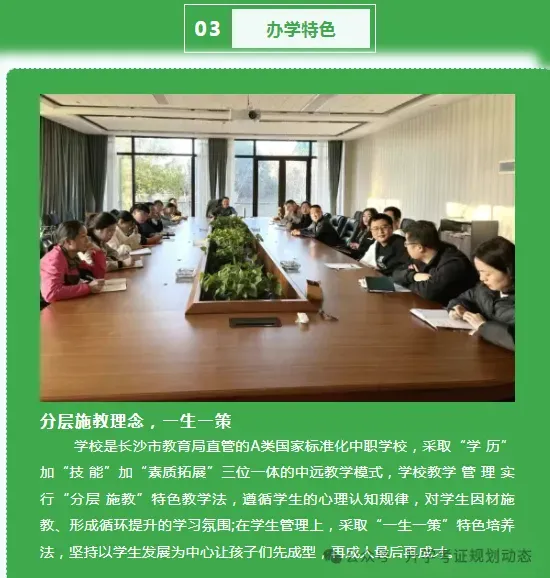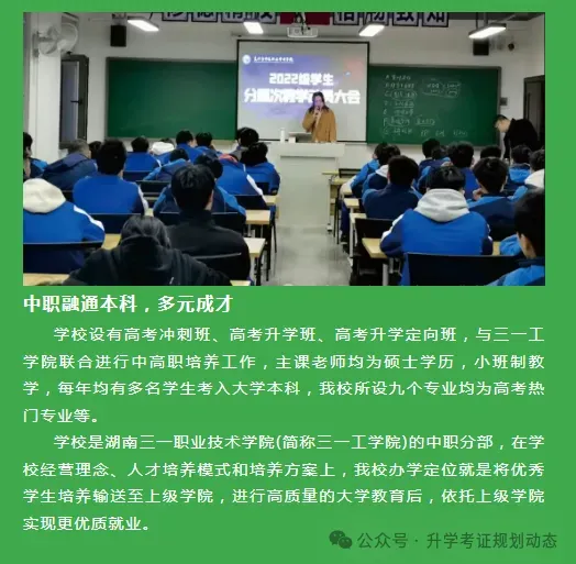 “3+2”中高职贯通: 与 湖南工业职业技术学院、长沙民政职业技术学院、湖南机电职院、湖南大众传媒职院等优质公办高职合作,无缝衔接大专教育。