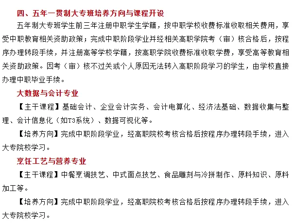 三年制所有专业必修公共基础课程:语文、数学、英语、计算机应用基础。各专业主干课程及培养方向如下: