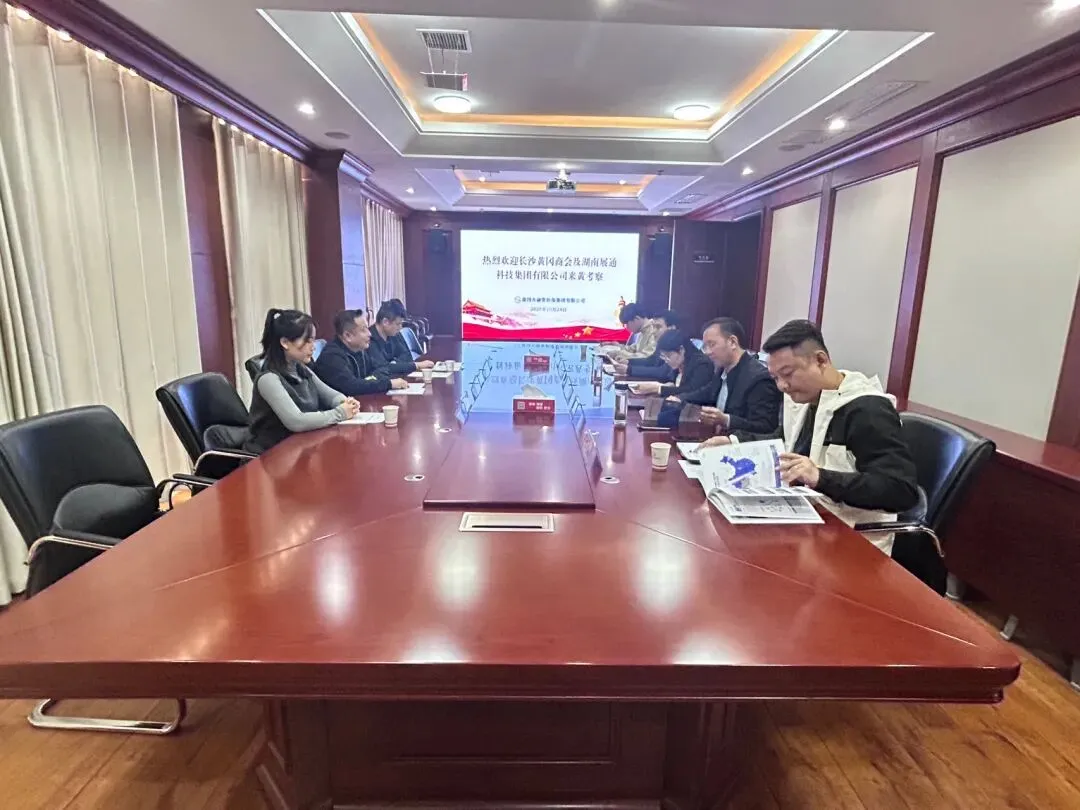 10月24日,长沙黄冈商会会长谢火富与湖南展通科技集团有限公司董事长邹展志一行莅临黄冈市融资担保集团考察交流。黄冈市融资担保集团党委书记、董事长汪秀芬,党委副书记、总经理刘云江,党委委员、纪委书记史哲,以及高新区、市经信局等相关单位负责人共同接待并出席座谈。