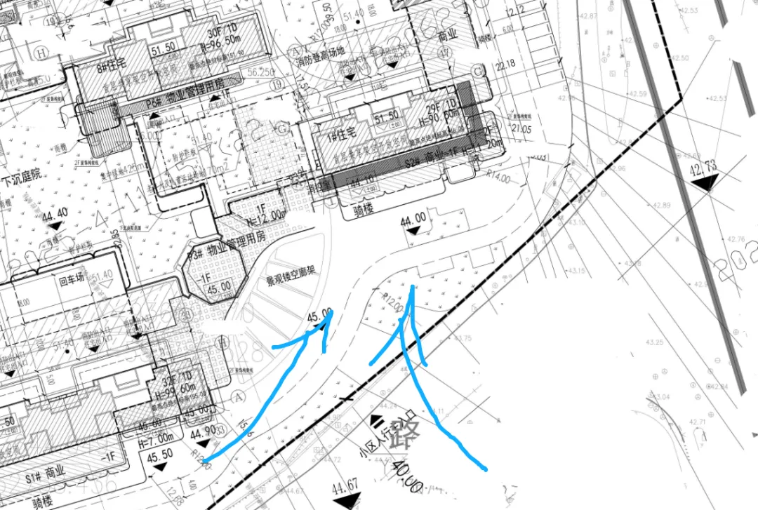前坪的商铺也同步内凹,商铺要运营就要有配套的停车位,这个前坪是否会考虑给商铺使用,如果不使用,这个失去一定昭示性的商铺,谁会买单。如果前坪给商铺停车,那对于业主来说,不是蛮友好。